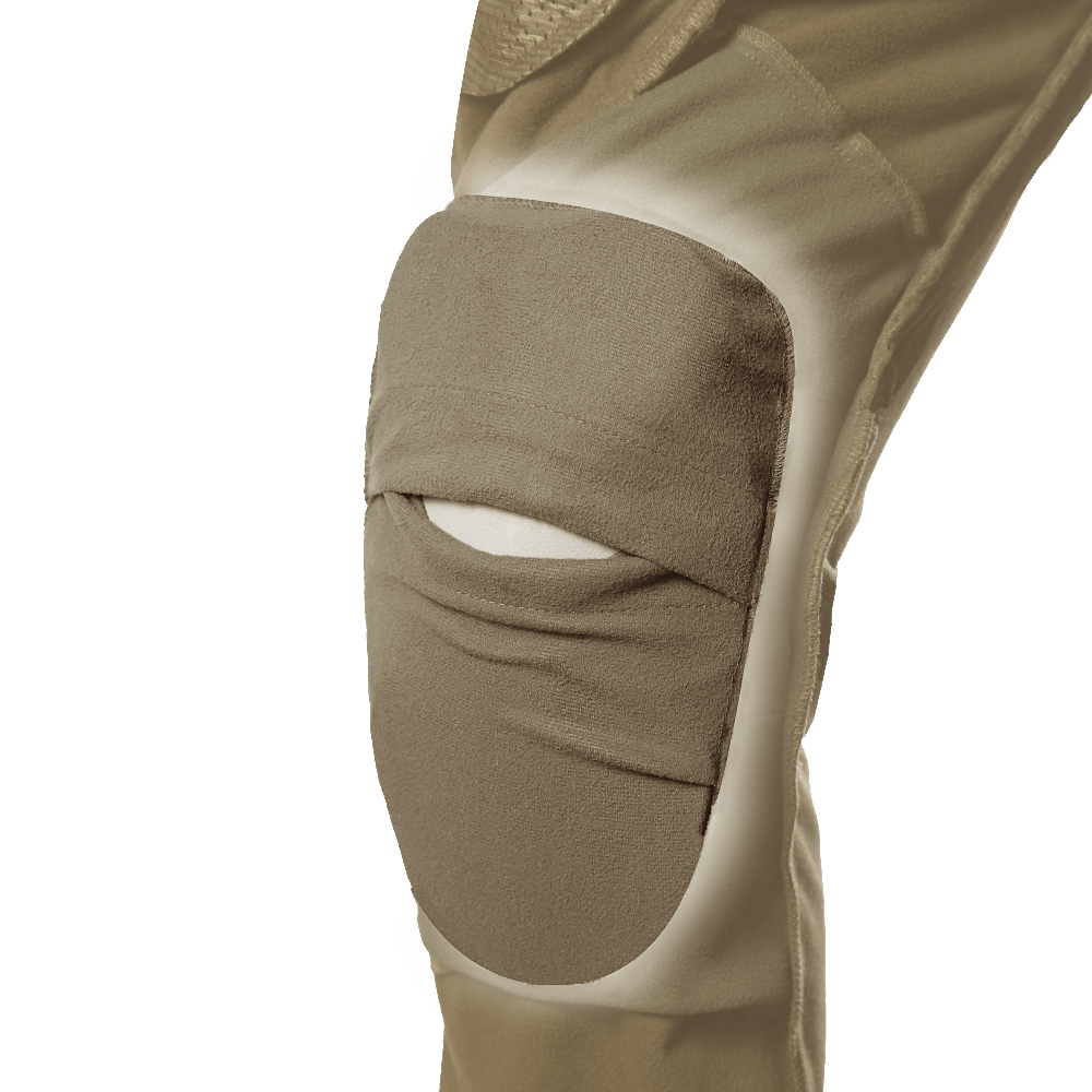 У зоні колін, з внутрішньої сторони, є спеціальні відділення для захисних вставок із EVA-піни, які підвищують рівень захисту під час активних дій.