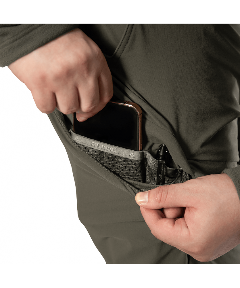 Штани мають 6 кишень: 2 бокові з вентиляційними сітками; 2 задні з вентиляційними сітками; 2 місткі на стегнах із блискавкою та клапаном.