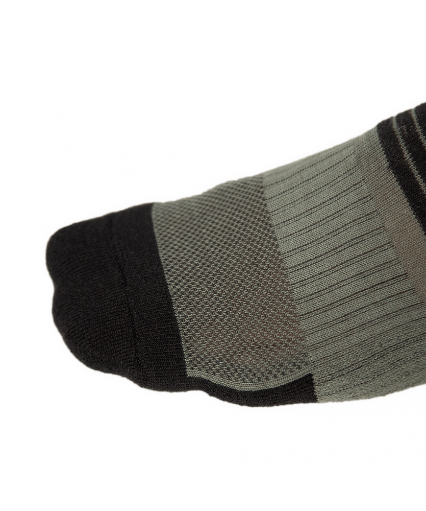 Шкарпетки виготовлені з інноваційної пряжі, де основну роль відіграє вовна мериноса – відомий природний ізолятор, який забезпечує чудове збереження тепла, водночас підтримуючи оптимальну терморегуляцію. Додатково в складі присутня бавовна для природної м'якості, нейлон для підвищеної зносостійкості та спандекс для еластичності.