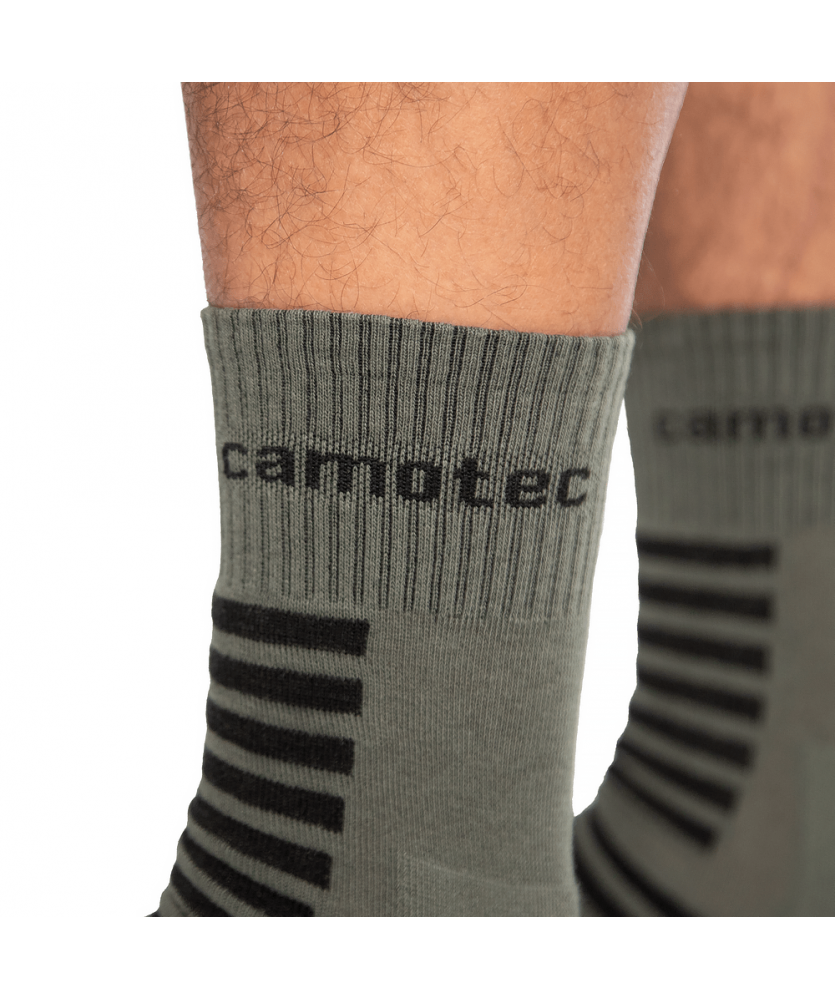 Індивідуальна посадка та еластична система фіксації забезпечені присутністю в складі еластану та 3 еластичними зонами, що запобігає перекручуванню та сповзанню шкарпетки на нозі.