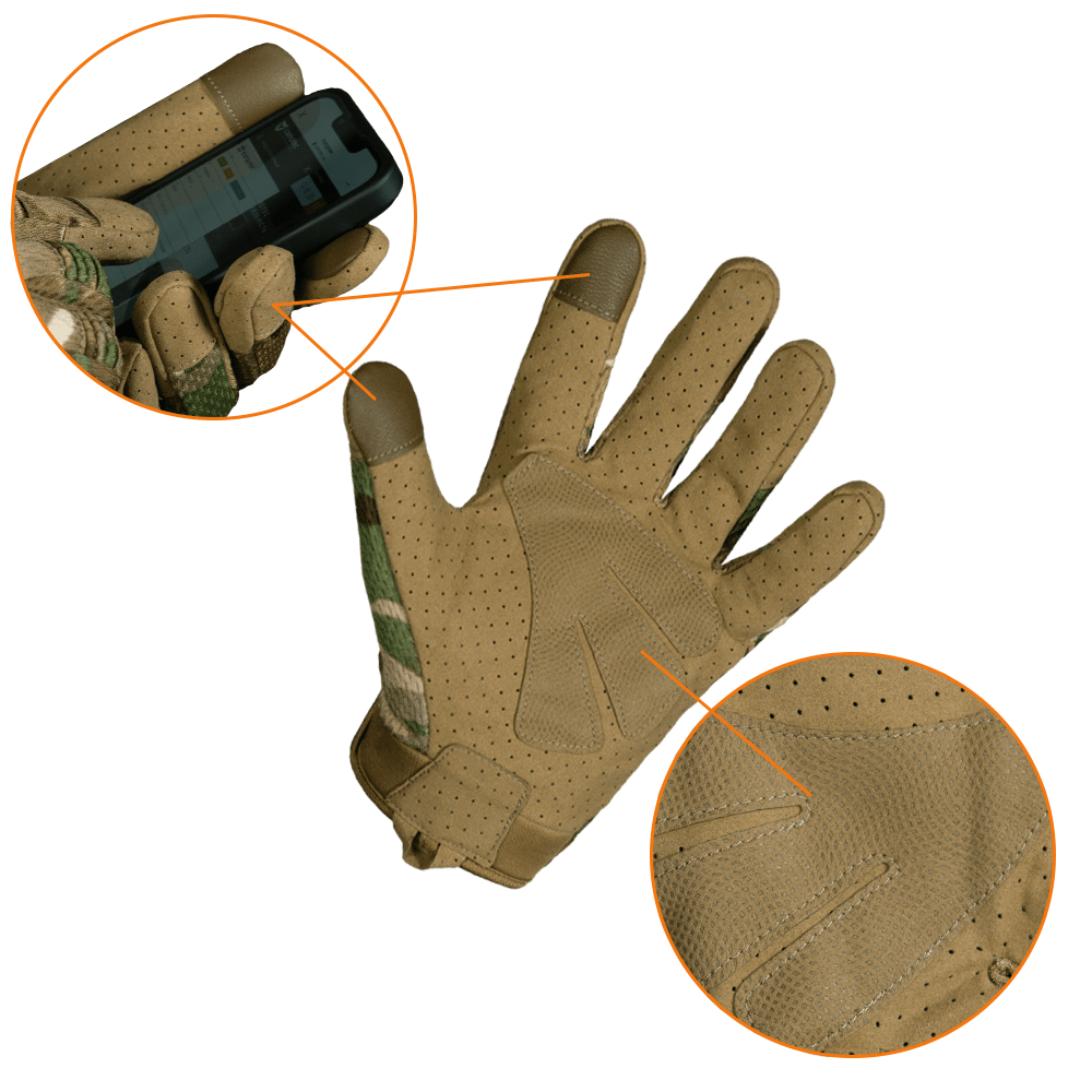 На великому і вказівному пальцях присутні накладки TouchScreen, для зручної роботи з гаджетами.